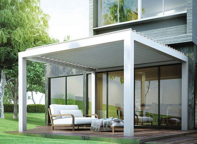Die Terrassenüberdachung mit vielen MöglichkeitenDank des motorisierten Lamellendaches können Sie die Position der Lamellen selbst bestimmen. Die Optionen sind Lamellen von 16 cm oder 21 cm (XL-Version). Bei einer Version mit XL-Lamellen wirkt das Dach bei geschlossenen Lamellen schlanker und bei geöffneten Lamellen genießen Sie einen größeren Lichteinfall. Geöffnet, geschlossen, gekippt, etwas dazwischen ...